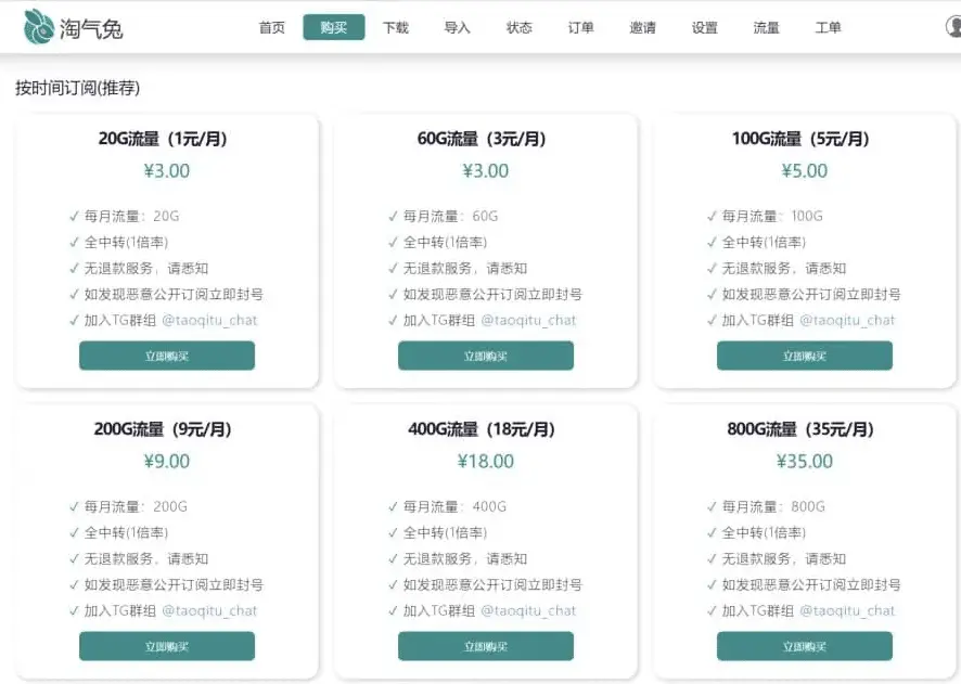 淘气兔机场,全中转节点,全部节点均为1倍率,无套路,1元每月20G高速流量,解锁流媒体4K视频秒开,而且还有优惠券(八折):tqt8