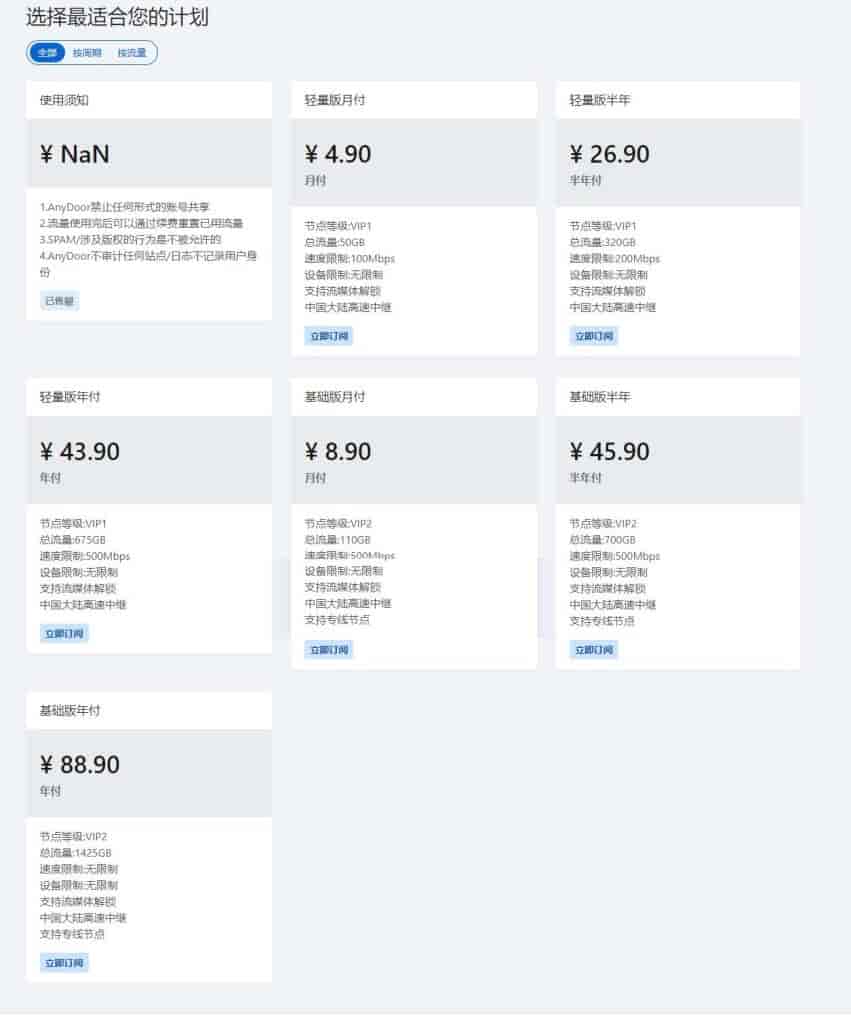 ANYDOOR机场解锁部分流媒体,速度还算可以,注册还送3GB试用浏览