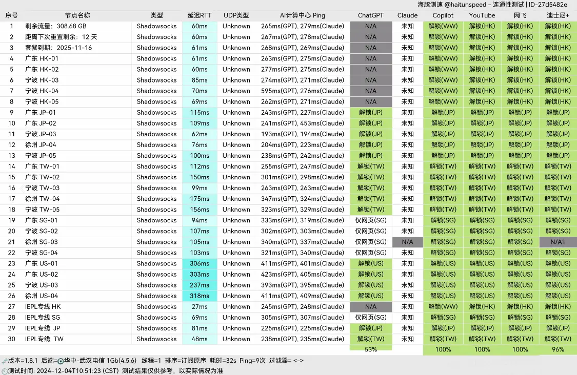 全中转线路,高级订阅有专线节点,晚高峰4-8K,支持流媒体解锁,支持Chatgpt