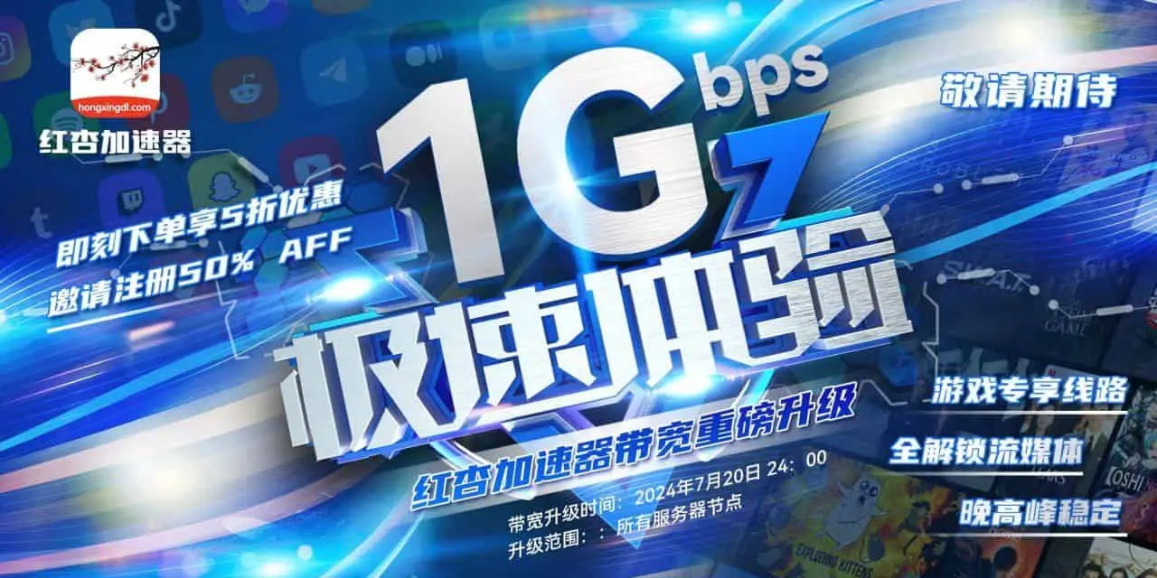 红杏云,极速专线中转机场(覆盖冷门国家)限时5元222G包月,专线一倍率,5折优惠码:8度(只限一次)Netflix/Disney/ChatGPT流媒体全解锁,
