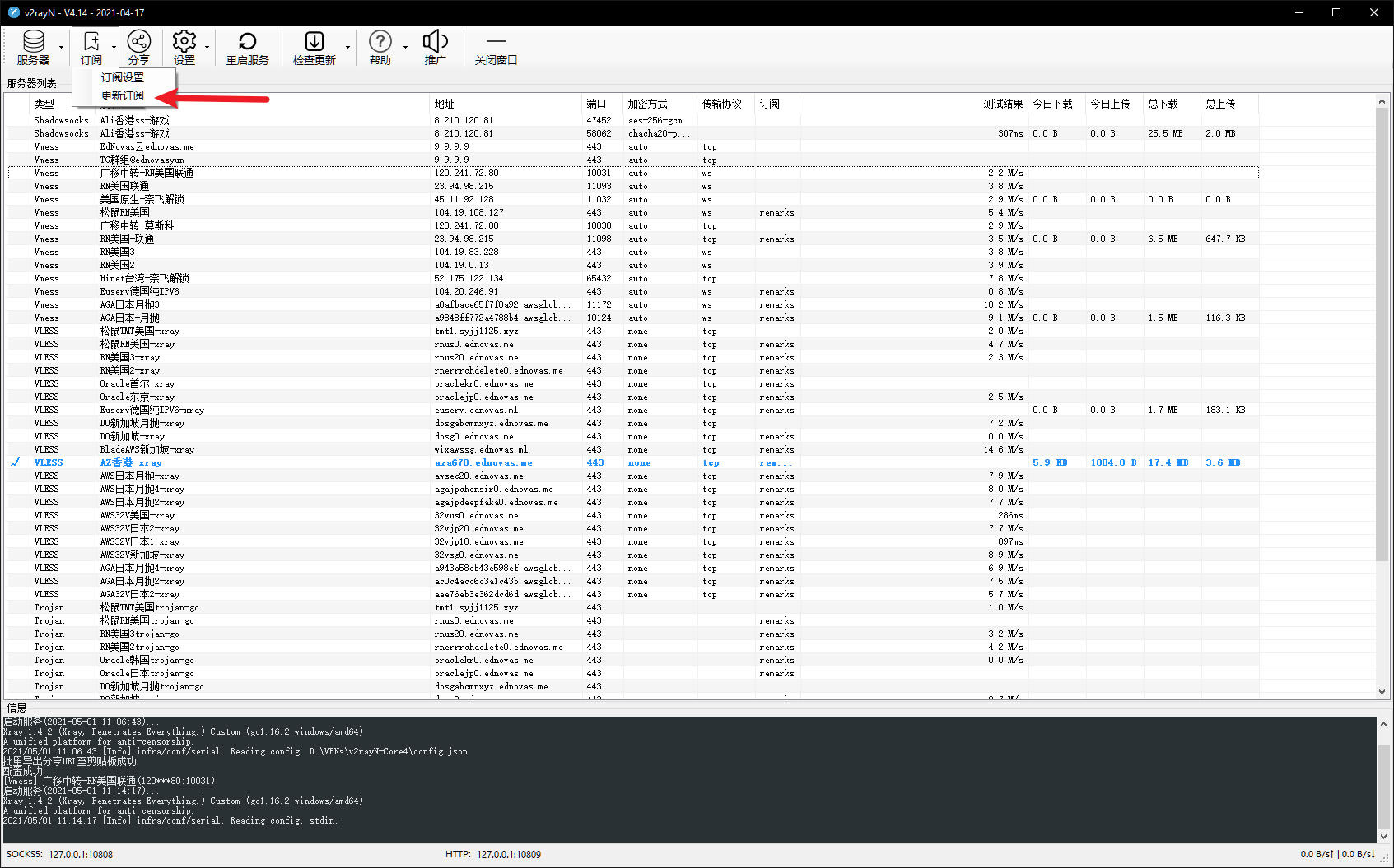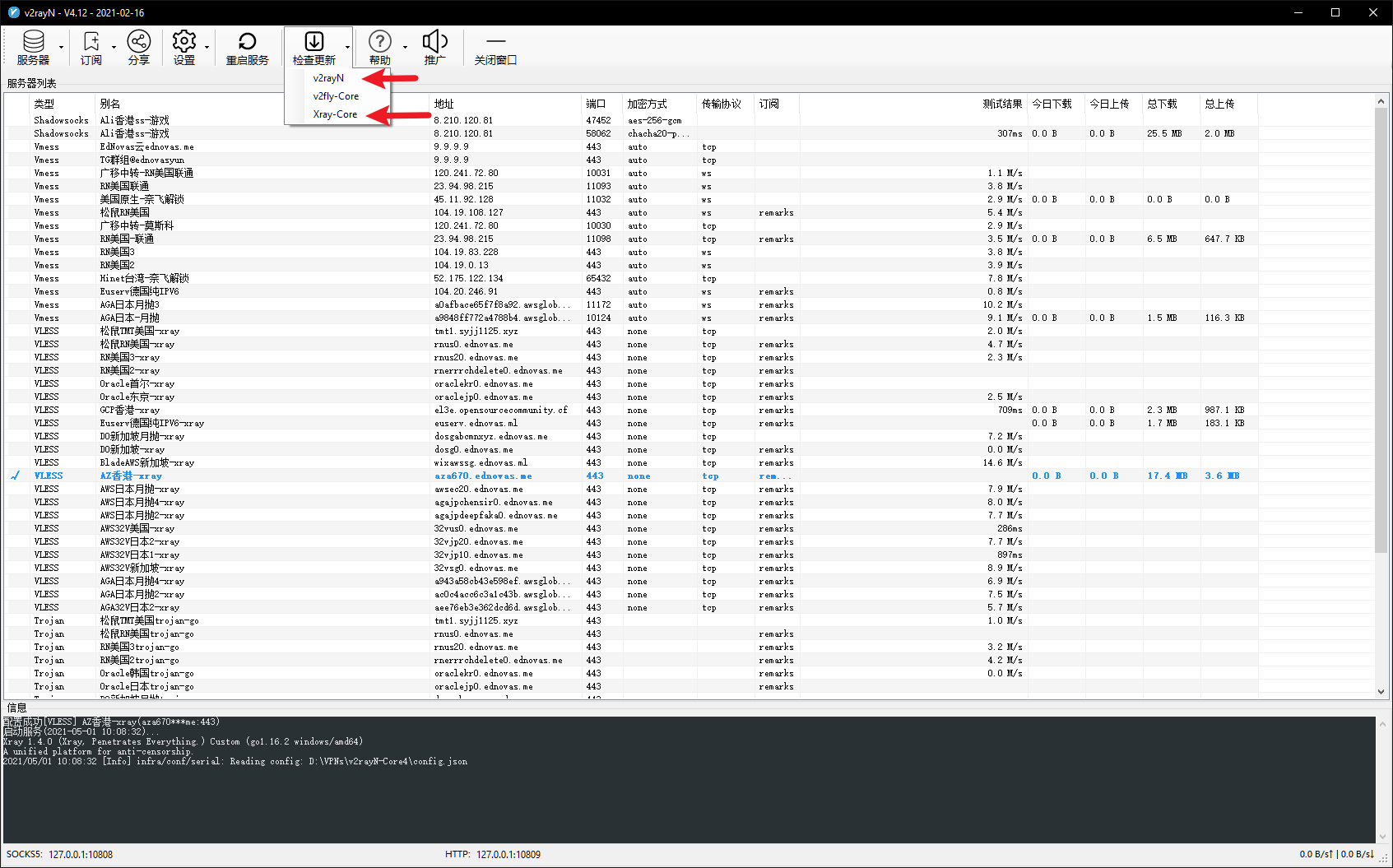 选择 设置 - 参数设置 - v2rayn 设置 - core 类型,换成 xray-core